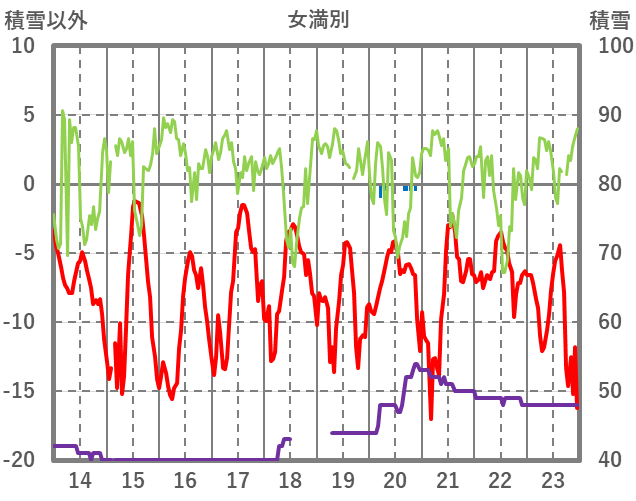 | 日 | 時 | 気温 | 降水 | 風向/風速 | 日照 | 積雪 | 降雪 |