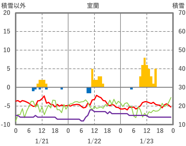 | 日 | 時 | 気温 | 降水 | 風向/風速 | 日照 | 積雪 | 降雪 |