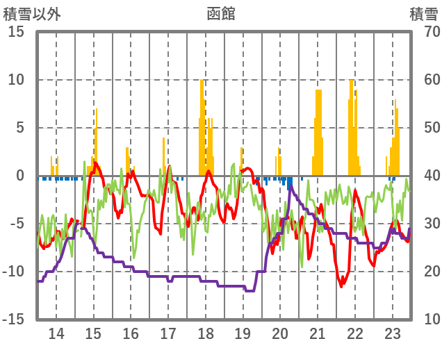 | 日 | 時 | 気温 | 降水 | 風向/風速 | 日照 | 積雪 | 降雪 |