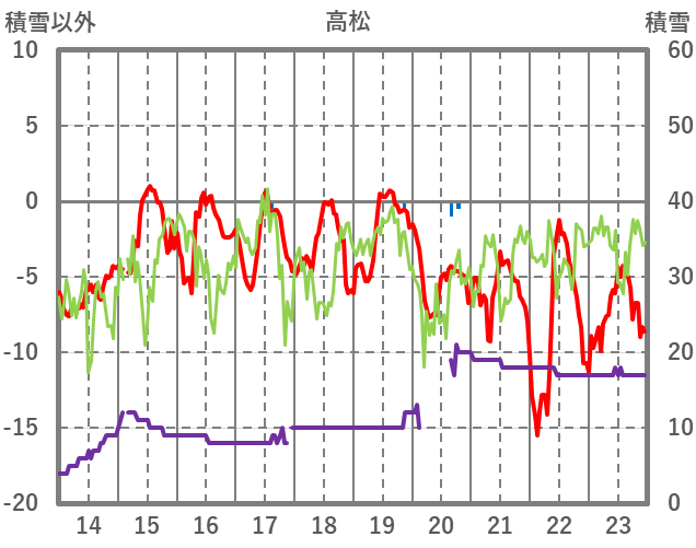 | 日 | 時 | 気温 | 降水 | 風向/風速 | 日照 | 積雪 | 降雪 |