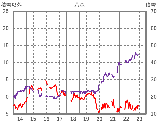 | 日 | 時 | 気温 | 降水 | 風向/風速 | 日照 | 積雪 | 降雪 |