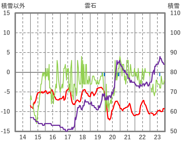 | 日 | 時 | 気温 | 降水 | 風向/風速 | 日照 | 積雪 | 降雪 |