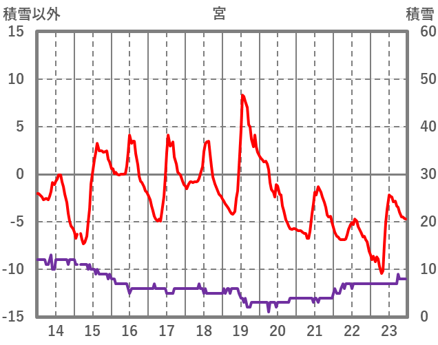 | 日 | 時 | 気温 | 降水 | 風向/風速 | 日照 | 積雪 | 降雪 |