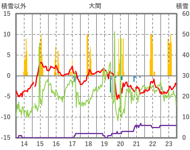 | 日 | 時 | 気温 | 降水 | 風向/風速 | 日照 | 積雪 | 降雪 |