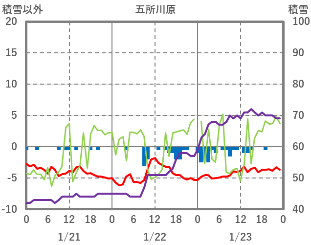 | 日 | 時 | 気温 | 降水 | 風向/風速 | 日照 | 積雪 | 降雪 |