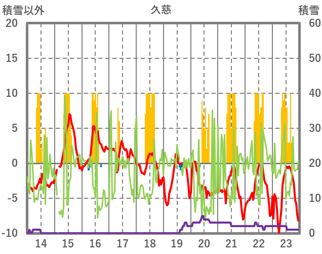 | 日 | 時 | 気温 | 降水 | 風向/風速 | 日照 | 積雪 | 降雪 |