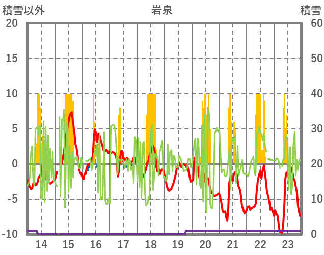 | 日 | 時 | 気温 | 降水 | 風向/風速 | 日照 | 積雪 | 降雪 |