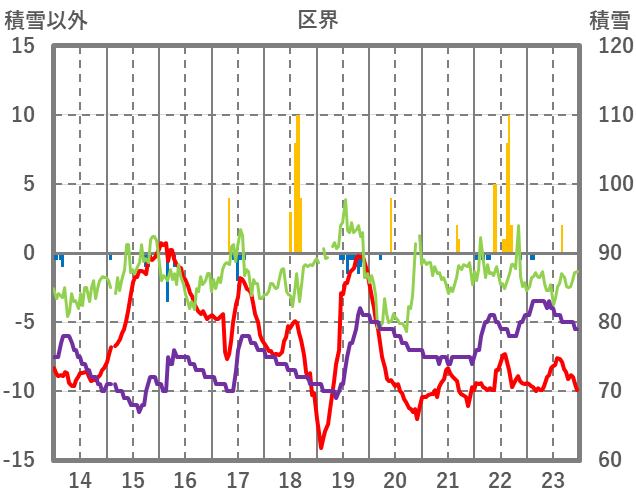 | 日 | 時 | 気温 | 降水 | 風向/風速 | 日照 | 積雪 | 降雪 |