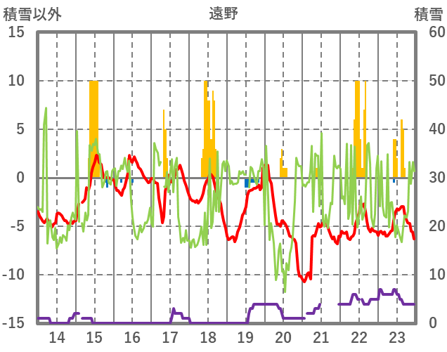 | 日 | 時 | 気温 | 降水 | 風向/風速 | 日照 | 積雪 | 降雪 |