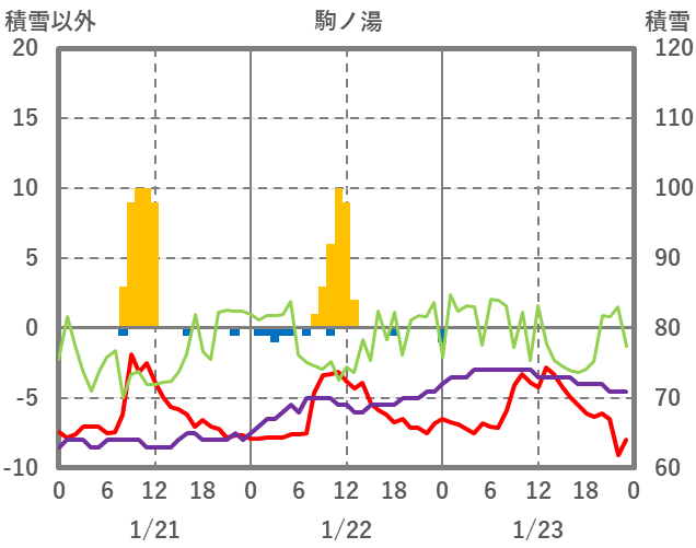 | 日 | 時 | 気温 | 降水 | 風向/風速 | 日照 | 積雪 | 降雪 |