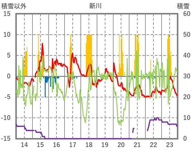 | 日 | 時 | 気温 | 降水 | 風向/風速 | 日照 | 積雪 | 降雪 |