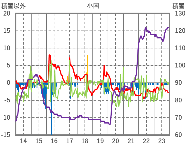 | 日 | 時 | 気温 | 降水 | 風向/風速 | 日照 | 積雪 | 降雪 |