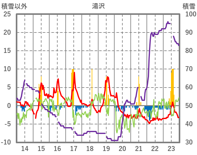 | 日 | 時 | 気温 | 降水 | 風向/風速 | 日照 | 積雪 | 降雪 |