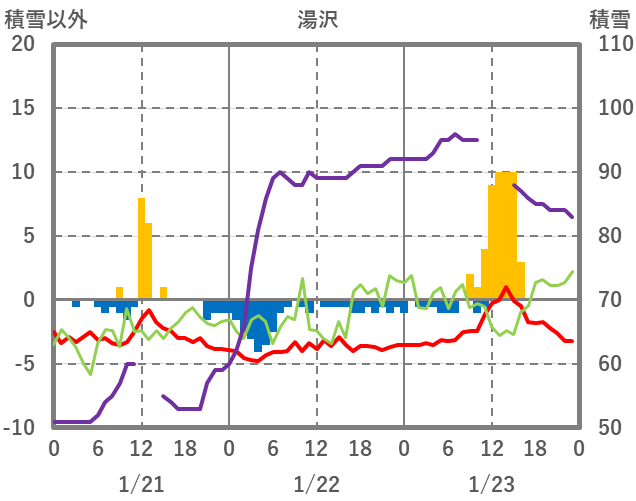 | 日 | 時 | 気温 | 降水 | 風向/風速 | 日照 | 積雪 | 降雪 |