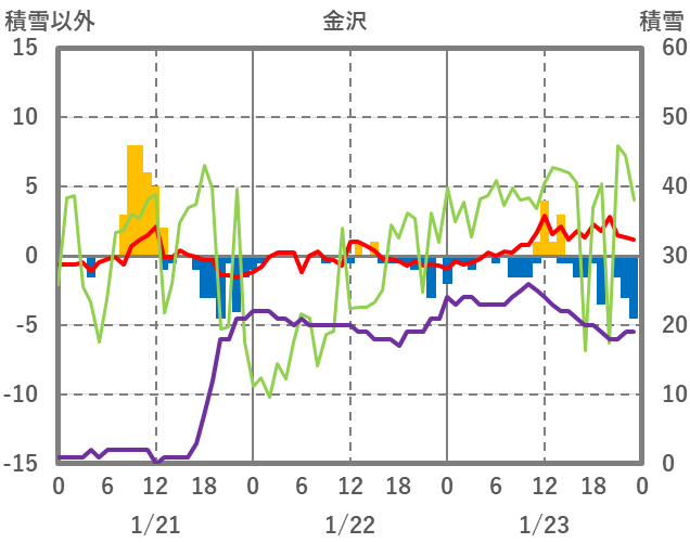 | 日 | 時 | 気温 | 降水 | 風向/風速 | 日照 | 積雪 | 降雪 |