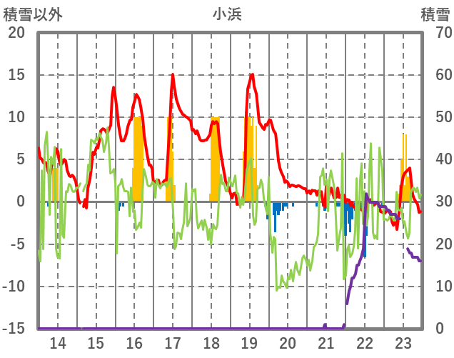 | 日 | 時 | 気温 | 降水 | 風向/風速 | 日照 | 積雪 | 降雪 |