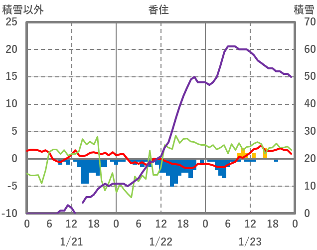 | 日 | 時 | 気温 | 降水 | 風向/風速 | 日照 | 積雪 | 降雪 |