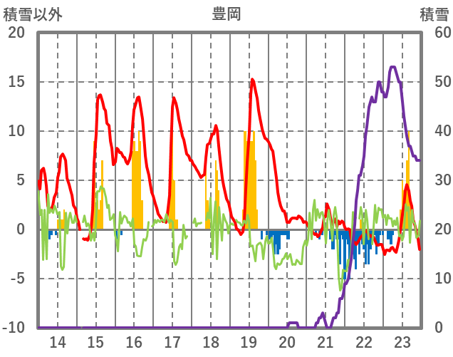 | 日 | 時 | 気温 | 降水 | 風向/風速 | 日照 | 積雪 | 降雪 |