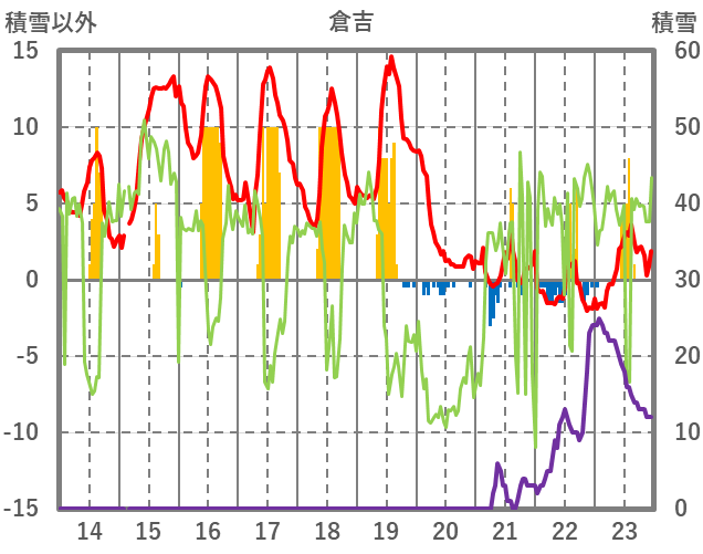 | 日 | 時 | 気温 | 降水 | 風向/風速 | 日照 | 積雪 | 降雪 |