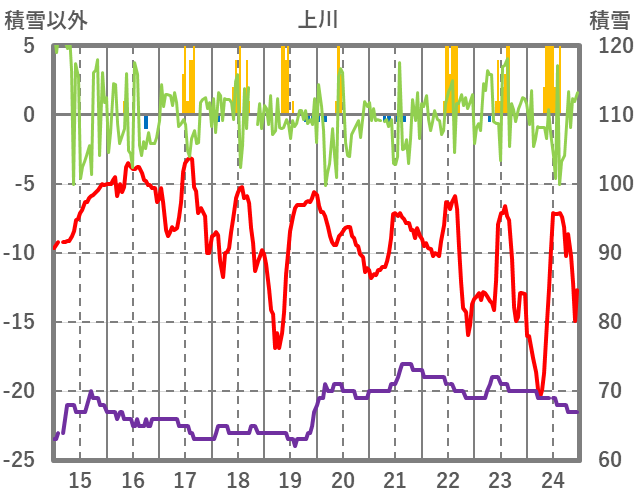 | 日 | 時 | 気温 | 降水 | 風向/風速 | 日照 | 積雪 | 降雪 |