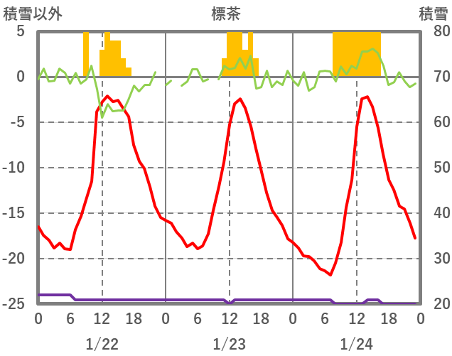 | 日 | 時 | 気温 | 降水 | 風向/風速 | 日照 | 積雪 | 降雪 |