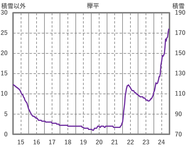 | 日 | 時 | 気温 | 降水 | 風向/風速 | 日照 | 積雪 | 降雪 |