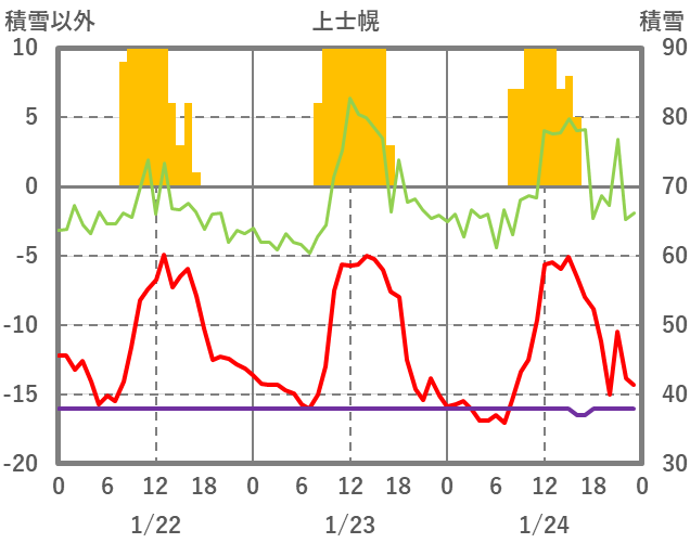 | 日 | 時 | 気温 | 降水 | 風向/風速 | 日照 | 積雪 | 降雪 |