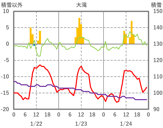 | 日 | 時 | 気温 | 降水 | 風向/風速 | 日照 | 積雪 | 降雪 |