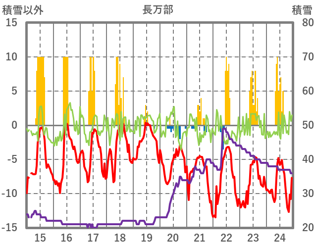 | 日 | 時 | 気温 | 降水 | 風向/風速 | 日照 | 積雪 | 降雪 |