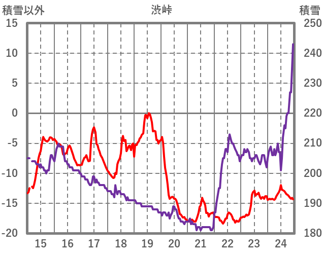 | 日 | 時 | 気温 | 降水 | 風向/風速 | 日照 | 積雪 | 降雪 |