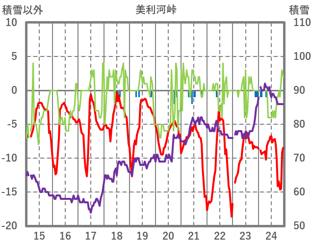 | 日 | 時 | 気温 | 降水 | 風向/風速 | 日照 | 積雪 | 降雪 |