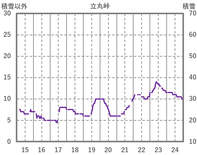 | 日 | 時 | 気温 | 降水 | 風向/風速 | 日照 | 積雪 | 降雪 |