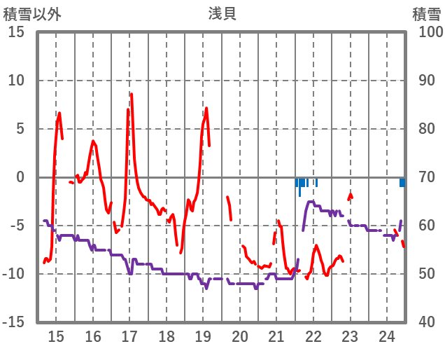 | 日 | 時 | 気温 | 降水 | 風向/風速 | 日照 | 積雪 | 降雪 |