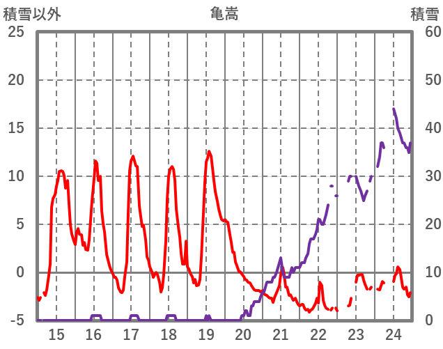 | 日 | 時 | 気温 | 降水 | 風向/風速 | 日照 | 積雪 | 降雪 |