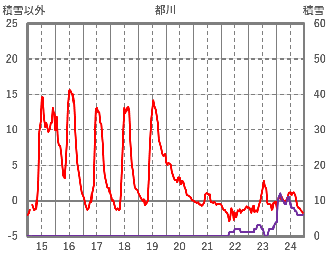 | 日 | 時 | 気温 | 降水 | 風向/風速 | 日照 | 積雪 | 降雪 |