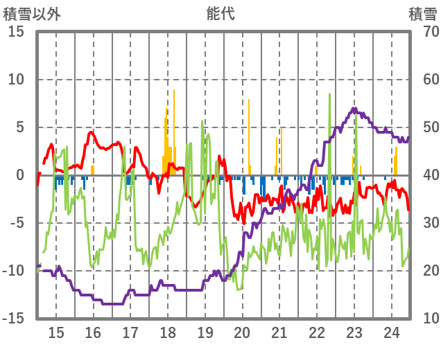 | 日 | 時 | 気温 | 降水 | 風向/風速 | 日照 | 積雪 | 降雪 |