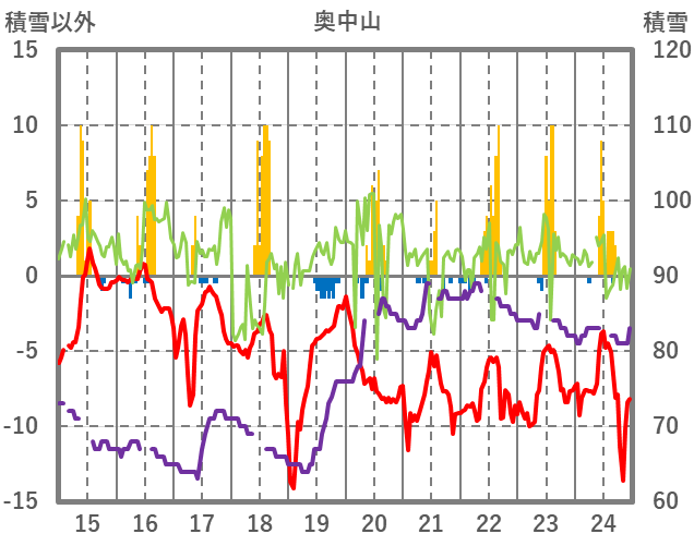 | 日 | 時 | 気温 | 降水 | 風向/風速 | 日照 | 積雪 | 降雪 |