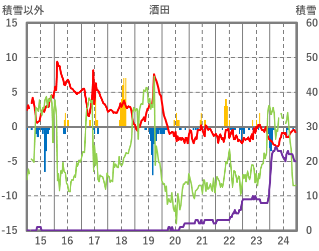 | 日 | 時 | 気温 | 降水 | 風向/風速 | 日照 | 積雪 | 降雪 |