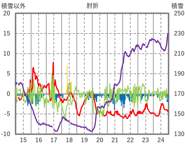 | 日 | 時 | 気温 | 降水 | 風向/風速 | 日照 | 積雪 | 降雪 |