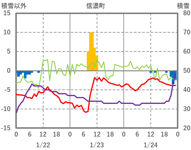 | 日 | 時 | 気温 | 降水 | 風向/風速 | 日照 | 積雪 | 降雪 |