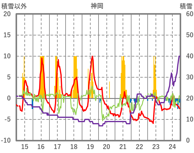 | 日 | 時 | 気温 | 降水 | 風向/風速 | 日照 | 積雪 | 降雪 |