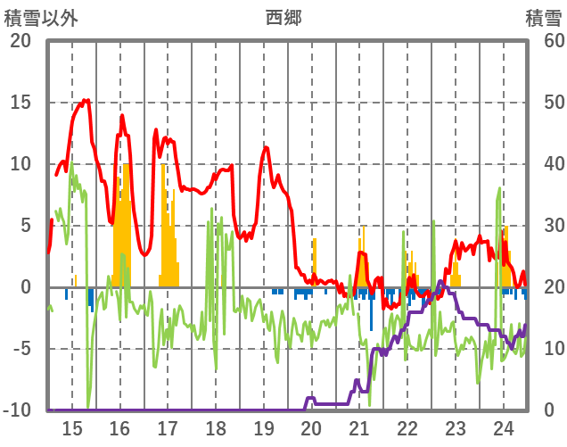 | 日 | 時 | 気温 | 降水 | 風向/風速 | 日照 | 積雪 | 降雪 |