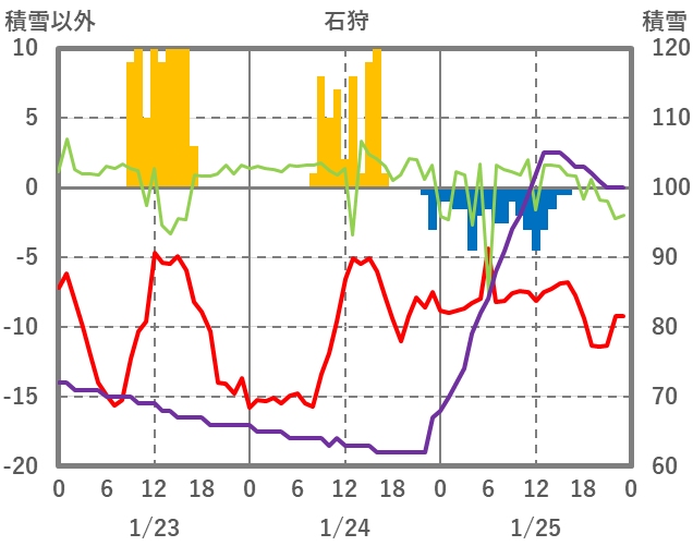 | 日 | 時 | 気温 | 降水 | 風向/風速 | 日照 | 積雪 | 降雪 |