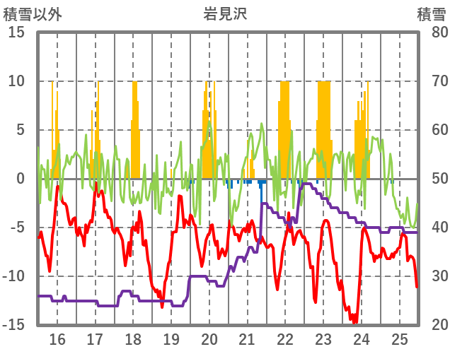 | 日 | 時 | 気温 | 降水 | 風向/風速 | 日照 | 積雪 | 降雪 |
