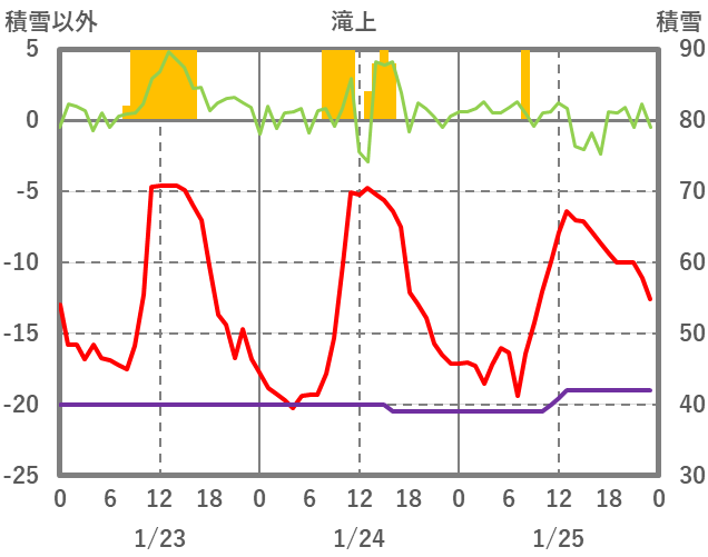 | 日 | 時 | 気温 | 降水 | 風向/風速 | 日照 | 積雪 | 降雪 |