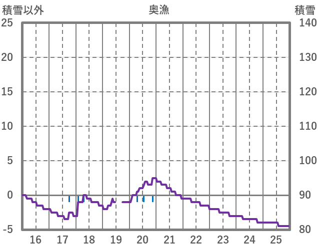 | 日 | 時 | 気温 | 降水 | 風向/風速 | 日照 | 積雪 | 降雪 |