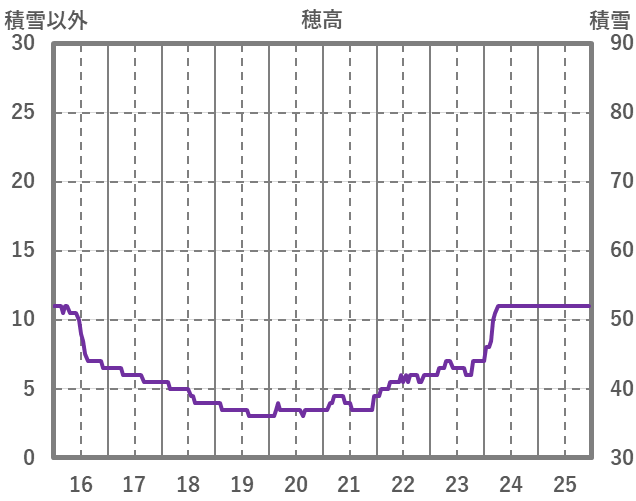| 日 | 時 | 気温 | 降水 | 風向/風速 | 日照 | 積雪 | 降雪 |