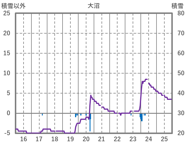 | 日 | 時 | 気温 | 降水 | 風向/風速 | 日照 | 積雪 | 降雪 |