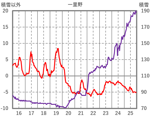| 日 | 時 | 気温 | 降水 | 風向/風速 | 日照 | 積雪 | 降雪 |