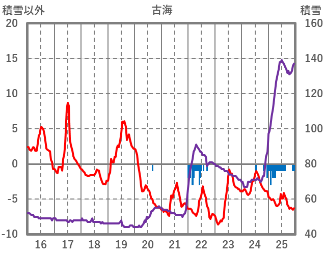 | 日 | 時 | 気温 | 降水 | 風向/風速 | 日照 | 積雪 | 降雪 |
